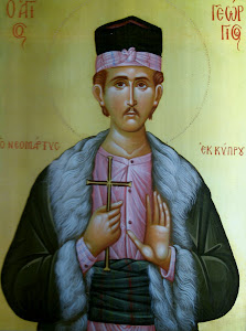 Ο Άγιος Νεομάρτυρας Γεώργιος καταγόταν από την Κύπρο. Αφού αναχώρησε από την πατρίδα του έφθασε στην Πτολεμαΐδα της Παλαιστίνης (σημερινή Άκκρα), όπου υπηρετούσε κοντά σε κάποιο ευρωπαίο πρόξενο. Εκεί, προσφέροντας τις υπηρεσίες του προς τον αφέντη του, επισκεπτόταν συχνά το σπίτι μιας φτωχής μωαμεθανής, η οποία είχε μια νεαρή θυγατέρα και αγόραζε αυγά. Κάποιες τουρκάλες γειτόνισσες, επειδή ο Γεώργιος δεν αγόραζε αυγά από αυτές, τον συκοφάντησαν ότι είχε αθέμιτες σχέσεις με τη νεαρή μωαμεθανή και με κραυγές συγκέντρωσαν μπροστά στο σπίτι της μωαμεθανής τον τουρκικό όχλο.Ο Γεώργιος, διαμαρτυρόμενος για την προσαπτόμενη ψευδή κατηγορία, οδηγήθηκε βίαια στον ιεροδικαστή. Εκείνος μάταια προσπάθησε να τον πείσει να γίνει μουσουλμάνος προς αποφυγήν της τιμωρίας. Παρά τις προσπάθειες του κριτή και τις κολακείες ή φοβέρες του όχλου, ο Μάρτυρας παρέμεινε αμετάθετος στην πίστη, δηλώνοντας ότι Χριστιανός γεννήθηκε και Χριστιανός θέλει να πεθάνει.Τότε ο κριτής διέταξε, το έτος 1752 μ.Χ., τον θάνατό του. Ο Μάρτυρας Γεώργιος οδηγήθηκε σε τόπο κοντά στην θάλασσα. Οι δήμιοι ανάγνωσαν την καταδίκη του σε θάνατο και προσπάθησαν πάλι με κολακείες και υποσχέσεις να επιτύχουν τον εξισλαμισμό του. Ο Μάρτυς ύψωσε τότε τα αλυσοδεμένα χέρια του στον ουρανό και ανεβόησε με φωνή μεγάλη: «Κύριε, Ιησού Χριστέ, δέξαι το πνεύμα μου και αξίωσέ με της Βασιλείας Σου». Οι Τούρκοι τον πυροβόλησαν και ορμώντας εναντίον του διαμέλισαν το τίμιο λείψανό του διά μαχαίρας. Τότε ξαφνικά έγινε θύελλα, που συντάραξε την θάλασσα. Τα κύματα έφθασαν μέχρι το σημείο όπου έκειτο το ιερό λείψανο του Αγίου. Οι Τούρκοι φοβούμενοι απομακρύνθηκαν, οι δε Χριστιανοί παρέλαβαν το σκήνωμα του Μάρτυρος και ενταφίασαν αυτό στο ναό της Πτολεμαΐδος.Στις 13 Απριλίου 1967 μ.Χ. τα σεπτά λείψανα του νεομάρτυρα μεταφέρθηκαν με τιμή στη Λευκωσία της Κύπρου και τοποθετήθηκαν στον Καθεδρικό Ναό του Αγίου Ιωάννου.