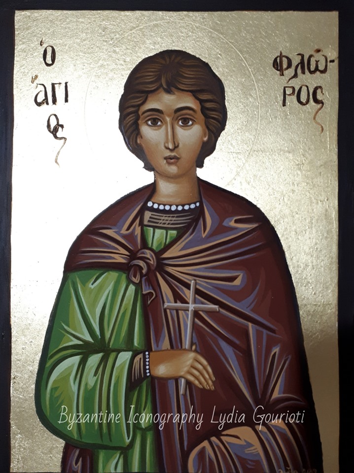Εὐσεβείας τοὶς τρόποις ἐγγυμναζόμενοι, τοῦ μαρτυρίου τὴν τρῖβον διαπεράτε καλῶς, ὡς αὐτάδελφοι κλεινοὶ Χριστὸν δοξάσαντες, ὅθεν γεραίρομεν ὑμᾶς, ὡς γενναίους Ἀθλητᾶς, Φλῶρε καὶ Λαῦρε βοῶντες. Ἀπὸ παντοίας ἀνάγκης, ρύσασθε πάντας ἠμᾶς Ἅγιοι.