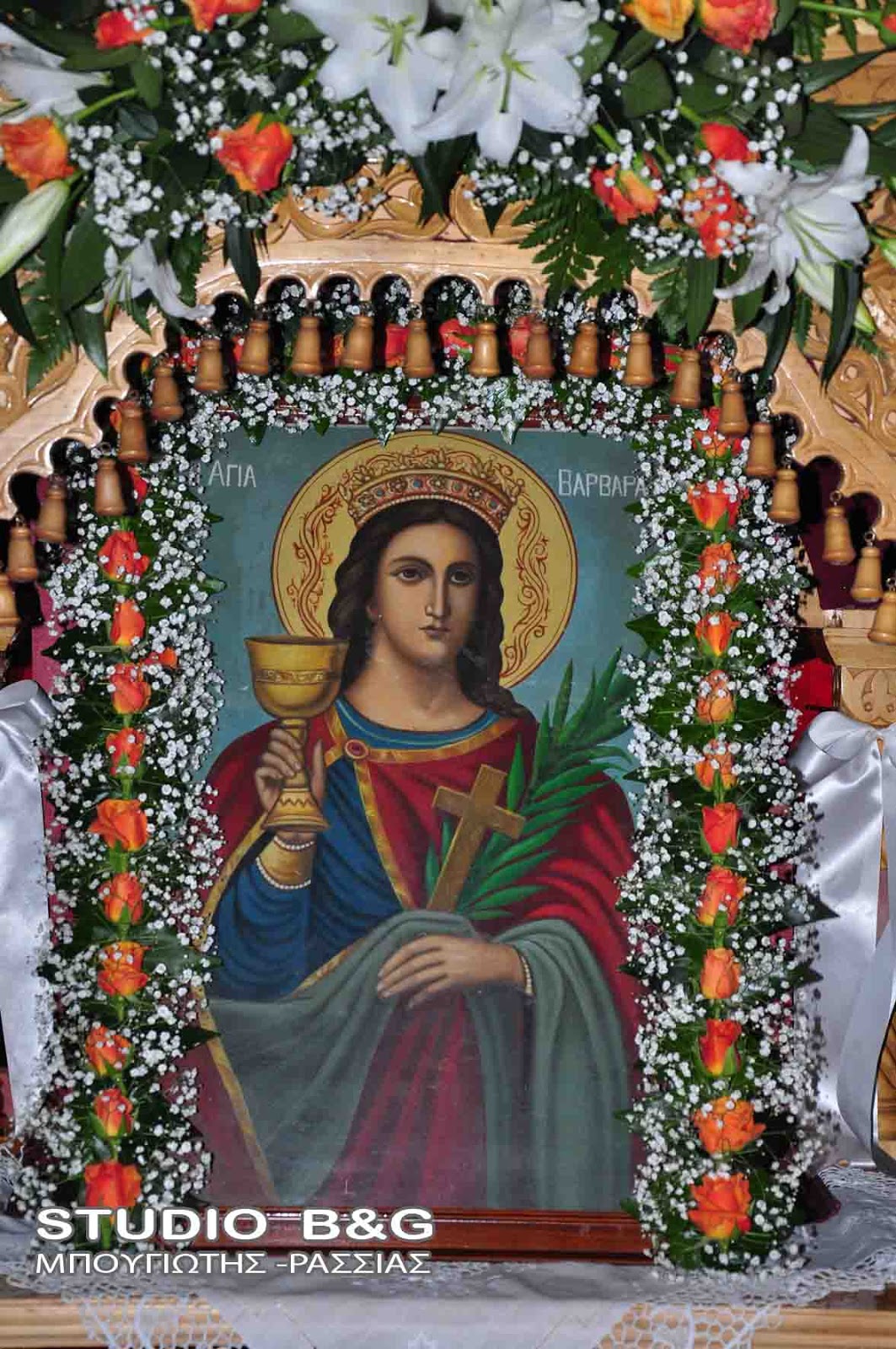 Τὸν νυμφίον σου Χριστὸν ἀγαπήσασα, τὴν λαμπάδα σου φαιδρῶς εὐτρεπίσασα, ταῖς ἀρεταῖς διέλαμψας Πανεύφημε· ὅθεν εἰσελήλυθας, σὺν αὐτῷ εἰς τοὺς γάμους, τὸ στέφος τῆς ἀθλήσεως, παρ' αὐτοῦ δεξαμένη, ἀλλ' ἐκ κινδύνων λύτρωσαι ἡμᾶς, τοὺς ἐκτελοῦντας Βαρβάρα τὴν μνήμην σου.
