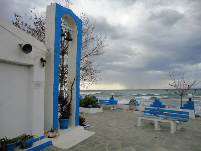 Στο ναό φυλάσσεται η εικόνα της Παναγίας ζωγραφισμένη σε όρθια μαρμάρινη βάση αγάλματος. Η παράδοση για το ξωκλήσι λέει ότι ένας χωρικός της περιοχής είδε ένα φως στη θάλασσα να πλησιάζει στην ακτή. Νομίζοντας ότι πρόκειται για πειρατικό καράβι, επέστρεψε στο χωριό να ειδοποιήσει τους συγχωριανούς του. Το πρωί, όταν το φως έφτασε στην ακτή, είδαν ότι ήταν ένα μεγάλο κομμάτι μάρμαρο, με την Παναγία ζωγραφισμένη πάνω του, που επέπλεε στη θάλασσα. Οι χωριανοί εντυπωσιάστηκαν από το θαύμα και ζήτησαν από τον Τούρκο μπέη της περιοχής να τους επιτρέψει να χτίσουν ένα εκκλησάκι για να στεγάσουν την εικόνα. Αυτός όμως αρνήθηκε, έριξε κάτω την εικόνα και άρχισε να την ποδοπατά. Η εικόνα έγινε ξαφνικά μαλακή σαν πηλός και παγίδεψε τα πόδια του μπέη, μη αφήνοντάς τον να ξεφύγει. Τότε ο μπέης μετάνιωσε, και ζητώντας συγνώμη επέτρεψε να χτιστεί το εκκλησάκι αυτό.