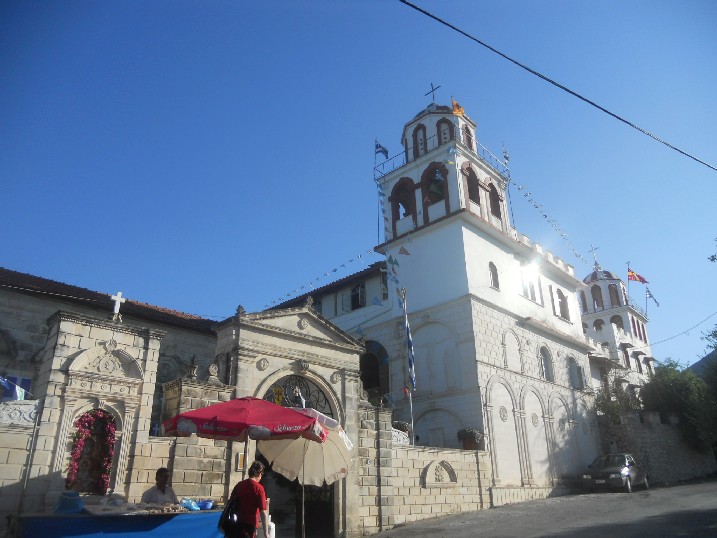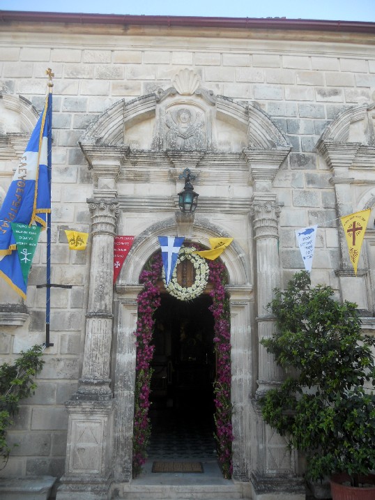 Το τέμπλο όμως του ναού είναι παλαιότερο (περίπου 300 ετών) και προέρχεται από την εκκλησία που ήταν σε αυτή την θέση αλλά κατέρρευσε από τους σεισμούς. Στο εσωτερικό του ναού θα δείτε το λείψανο των παιδιών που σκότωσε ο Ηρώδης στα Ιεροσόλυμα, πετρώματα από τους Αγίους Τόπους και τον Σταυρό από τον Πανάγιο Τάφο. Η εξωτερική του εμφάνιση θυμίζει αρχαίο κάστρο αφού περιμετρικά του μοναστηριού υπάρχουν πολεμίστρες πάνω στους πύργους. Εντύπωση επίσης προκαλεί η εναλλαγή δυο χρωμάτων, του κόκκινου με το άσπρο που τονίζουν τα παράθυρα και τις αψίδες. Το μοναστήρι διαθέτει εξαιρετική θέα προς το κεντρικό πεδινό κομμάτι του νησιού ενώ είναι κτισμένο ανάμεσα σε κατάφυτους ελαιώνες. Οι μοναχές της Ελευθερώτριας φημίζονται για τα υφαντά και τις κουρελούδες που φτιάχνουν στους παραδοσιακούς αργαλειούς τους.