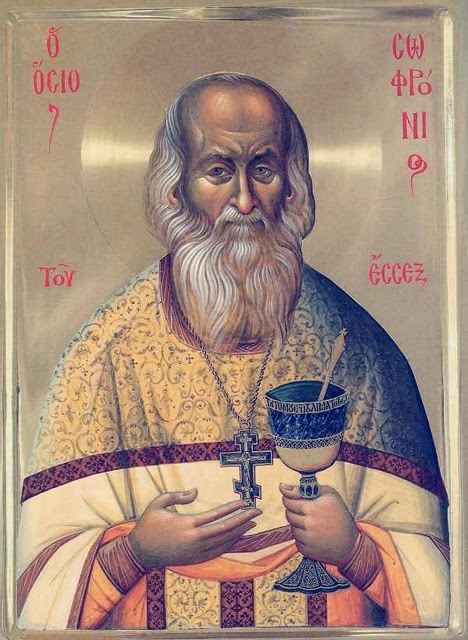 Τὶς ἐκδιηγήσεται Σωφρονίου ἄθλους τοῦ ἐσχάτως διαλάμψαντος Πνεύματι, καὶ βιώσαντος Χάριτι Παύλου Ἀποστόλου ρήματα· Χριστῷ συνεσταύρωμαι, ζῶ δὲ οὐκέτι ἐγώ, ζῇ δὲ ἐν ἐμοὶ Χριστός, εἴπερ τὸ ζῆν Χριστῷ μόνῳ, ἔστι ζωὴ καὶ τὸ ἀποθανεῖν κέρδος, καὶ ἡμῖν ἐχαρίσθη πάσχειν ὑπὲρ Χριστοῦ· οὐ μόνον τὸ εἰς Χριστὸν πιστεύειν· διὸ τιμᾶν Σωφρόνιον χρέος καὶ ὄφλημα Χριστιανῶν ἐστίν, ὁπηνίκα βίον τούτου πᾶς ὁρᾷ, βίβλους τούτου πᾶς οἶδε, λόγους ἤκουσε τούτου Ὀρθόδοξος πληθὺς Ἑώας καὶ Δυσμῶν, Νότου καὶ Βορρᾶ, Ἄθω καὶ ἐσμὸς ἐθνῶν ἁπάντων καὶ λαῶν· μετανοίας κῆρυξ γέγονε, ζωγράφων ἑλκυστὴρ πρὸς θείαν βιοτήν, Μοναχῶν φωταγωγός, ἱερέων καὶ ποιμένων ὁδηγός, φιλοσόφων θεολόγων ἑνοποιὸς πρὸς Χριστοῦ Σοφίαν καὶ Βασιλείαν· τῆς δὲ ταπεινώσεως Σωτῆρος ἄκρας κενωτικῆς μέχρις ᾅδου ἦν μιμητής, ὁμοῦ Σιλουανῷ αὐτοῦ γυμναστῇ καὶ Ἄθω Ὁσίοις, Εὐρώπης πάλαι Ἁγίοις καὶ ρωσικῆς γῆς πολλοῖς καταργοῦσιν Ἀσίας σκότη καὶ ἄγουσι Σιὼν Ἄνω ἀσφαλῶς· πρὸς οὕς πάντες εἴπωμεν· Σωφρόνιε πάτερ πρέσβευε σὺν τοῖς Ἁγίοις πᾶσιν, ἡμᾶς σωθῆναι, ἐλέει πάντως τοῦ Παντοκράτορος.