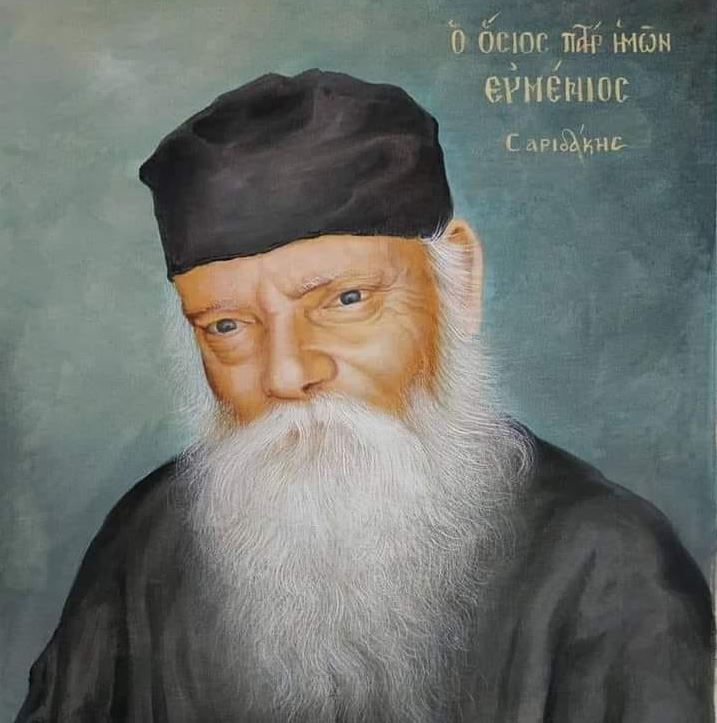 Τὸν ἀνεξίκακον, ἡσύχιον, ἐχέφρονα, ἁπλοῦν τε πρᾶον, ταπεινὸν καὶ εὐσυμπάθητον, εὐλαβῆ ἱερομόναχον μελιῤῥύτοις ἀνυμνήσωμεν ᾠδαῖς, ὡς ἀπλανέστατον κατευθύντορα πιστῶν πρὸς βίον κρείττονα, πόθῳ κράζοντες· Χαίροις, μάκαρ Εὐμένιε.