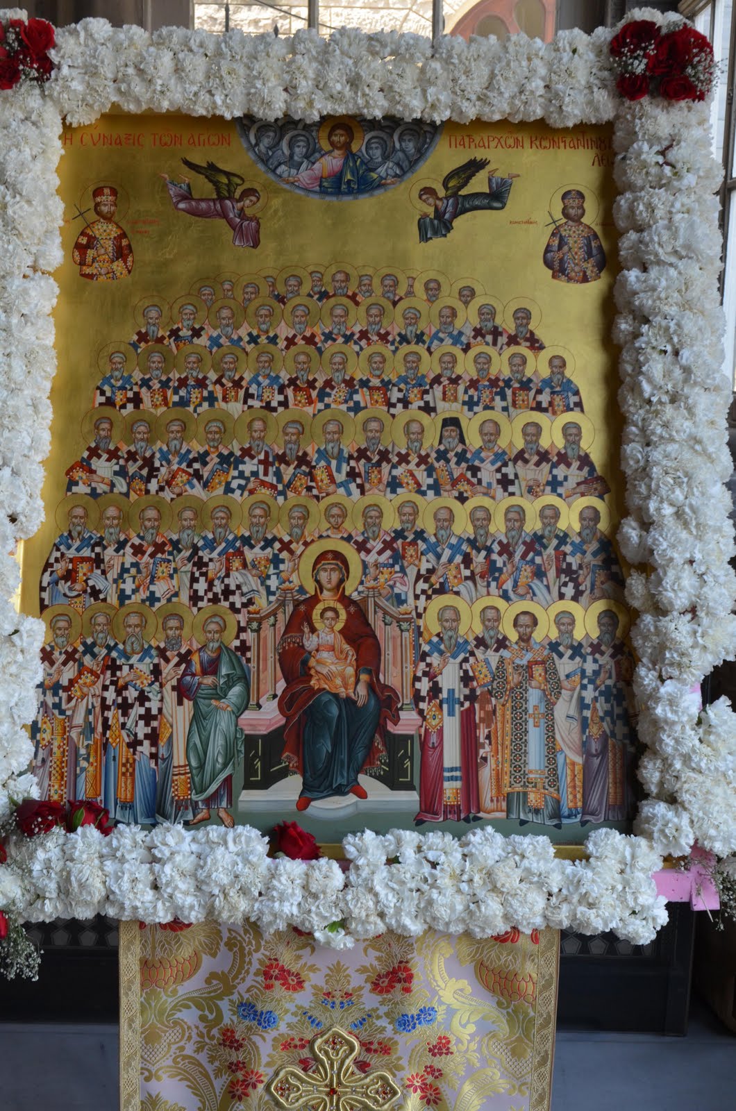 Την Κυριακήν της Σαμαρείτιδος, κατ’ έτος, τελείται εν τω Οικουμενικώ Πατριαρχείω η εορτή της «συνάξεως» επί τη ιερά μνήμη «πάντων των εν Αγίοις Πατέρων ημών Αρχιεπισκόπων και Πατριαρχών Κωνσταντινουπόλεως». Το πρώτον η εορτή αύτη εθεσπίσθη προτάσει του νυν ευκλεώς Πατριαρχούντος Αυθέντου και Δεσπότου ημών κ.κ. Βαρθολομαίου του Α΄. Ούτως η Α.Θ.Π., ο Πατριάρχης Βαρθολομαίος, άμα τη εκλογή Του εν έτει 1991 μ.Χ., προέτεινεν εις την Ενδημούσαν Σύνοδον κατά την συνεδρίαν της 24ης Οκτωβρίου 1991 μ.Χ. την θέσπισιν κοινής εορτής πάντων των προκατόχων Αυτού Αγίων Πατριαρχών, από του ιδρυτού της Βυζαντίδος Εκκλησίας, Πρωτοκλήτου Ανδρέου, και του υπ’ αυτού κατασταθέντος πρώτου επισκόπου αυτής Στάχυος (38 – 54 μ.Χ.) έως και του Οικουμενικού Πατριάρχου Κυρίλλου του ΣΤ΄ (1813 – 1818 μ.Χ.) απαγχονισθέντος παρά την θύραν της Μητροπόλεως Ανδριανουπόλεως την 18ην Απριλίου 1821 μ.Χ. - «Ούτω θα έχομεν την ευκαιρίαν ίνα επικαλούμεθα την χάριν και την προς Κύριον μεσιτείαν αυτών υπέρ της Μητρός Εκκλησίας και υπέρ ημών αυτών» είπεν ο Πατριάρχης ημών εις εκείνην την συνεδρίαν. Συνοδική δε αποφάσει, κατά την συνεδρίαν της Αγίας και Ιεράς Συνόδου της 19ης Νοεμβρίου 1991 μ.Χ., εθεσπίσθη η εορτή αύτη και έκτοτε εορτάζεται πανηγυρικώς και εκκλησιοπρεπώς εις την καθέδραν του Οικουμενικού Πατριαρχείου και δη δια τελέσεως Πατριαρχικής και Συνοδικής Λειτουργίας, εν τω Πανσέπτω Πατριαρχικώ Ναώ του Αγίου Μεγαλομάρτυρος Γεωργίου του τροπαιοφόρου. Συνετάγη δε επί τούτω και ιερά ακολουθία, υπό του αοιδίμου υμνογράφου της Αγίας του Χριστού Μεγάλης Εκκλησίας, Γερασίμου του Μικραγιαννανίτου, συμψαλλομένη κατά την Κυριακήν της Σαμαρείτιδος, μετά της του Πεντηκοσταρίου ακολουθίας, καθά το Τυπικόν της Μεγάλης Εκκλησίας διακελεύει. Ο δε, εκ των μελών της σεβασμίας Ιεραρχίας του Οικουμενικού Θρόνου, Μητροπολίτης Ιερισσού, Αγίου Όρους και Αρδαμερίου, υπέρτιμος και έξαρχος πάσης Χαλκιδικής, κ. Νικόδημος, εχάρισε εις την Μεγάλην Εκκλησίαν Ιεράν Εικόνα των Αγίων.