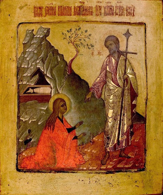 Η Αγία Μαρία η Μαγδαληνή, καταγόταν από τα Μάγδαλα, πόλη που βρίσκεται δυτικά της θάλασσας της Γαλιλαίας. Όταν πληροφορήθηκε για τον Χριστό, πήγε κοντά του και απαλλάχθηκε από τα επτά δαιμόνια που την ενοχλούσαν και στην συνέχεια έγινε μαθήτρια του. Αυτή, μάλιστα, κατά την Ανάσταση του Κυρίου ήλθε πρώτη στον τάφο Του με αρώματα, και άγγελοι ντυμένοι στα λευκά ανήγγειλαν σ' αυτή την Ανάσταση Του. Η Μαρία, μετά την κάθοδο του Αγίου Πνεύματος, εξακολούθησε να διακονεί στην πρώτη χριστιανική Εκκλησία στην Ιερουσαλήμ. Έπειτα πήγε στην Έφεσο, κοντά στον Άγιο Ιωάννη το Θεολόγο, οπού και πέθανε. Τάφηκε στην είσοδο της σπηλιάς, όπου αργότερα εκοιμήθησαν οι επτά παίδες εν Εφέσω.