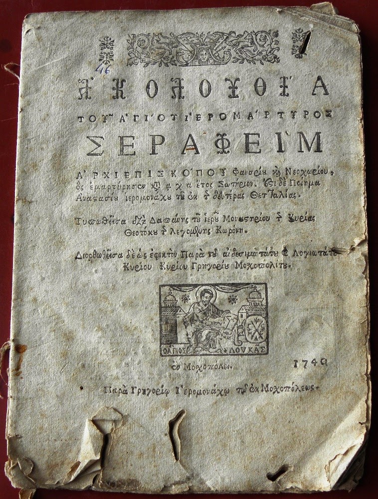 Ακολουθία του Αγίου Ιερομάρτυρος Σεραφείμ, τυπωθείσα το 1740